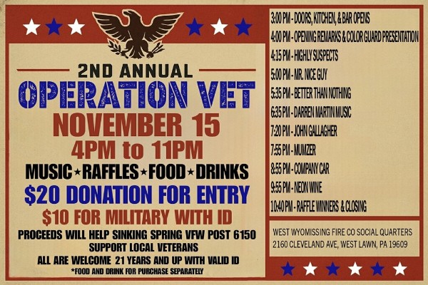 We will be playing at Operation Vet with three other bands in an all day charity evert at